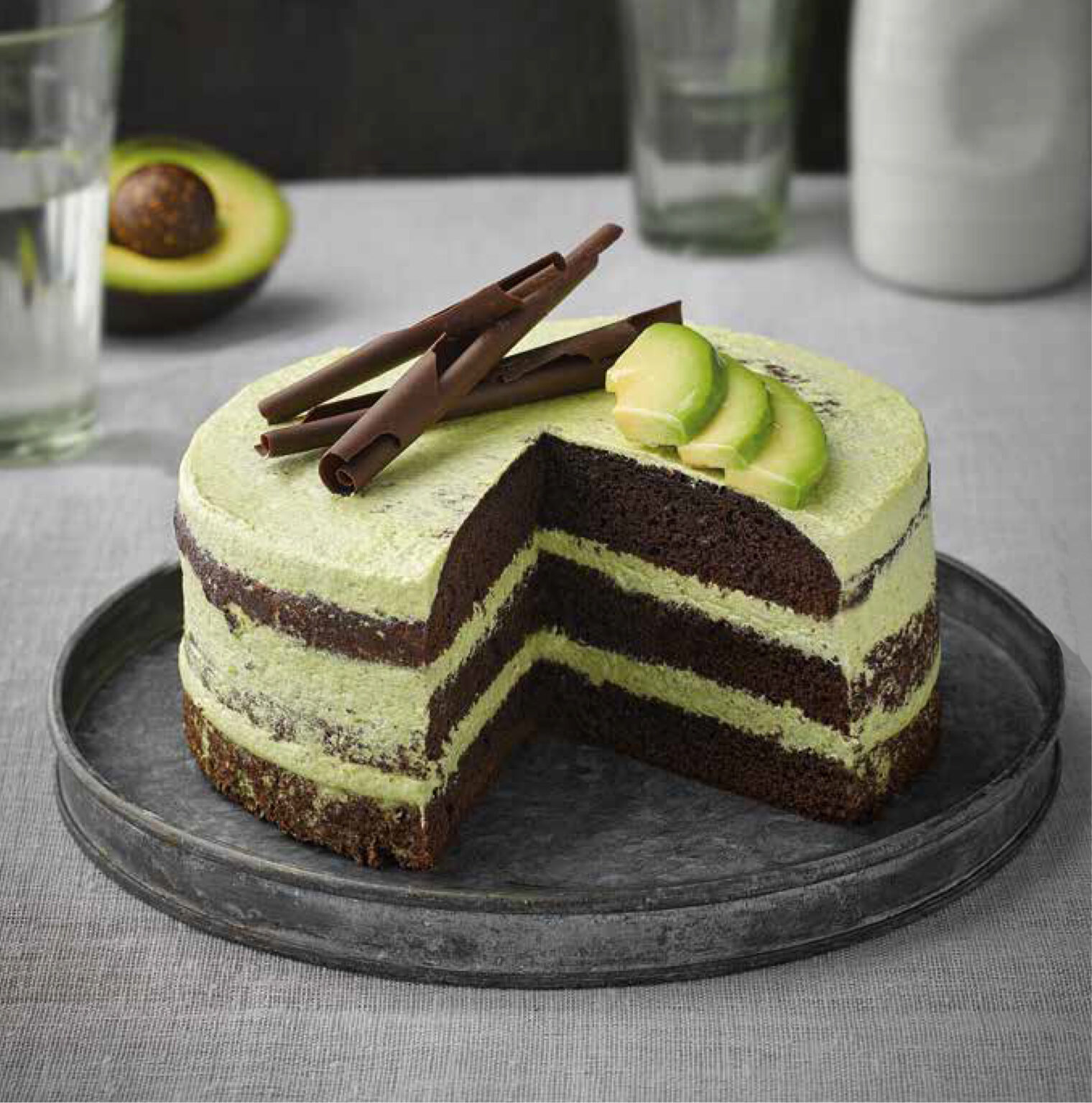 Na montagem alterne camadas de chocolate com glacê de abacate.