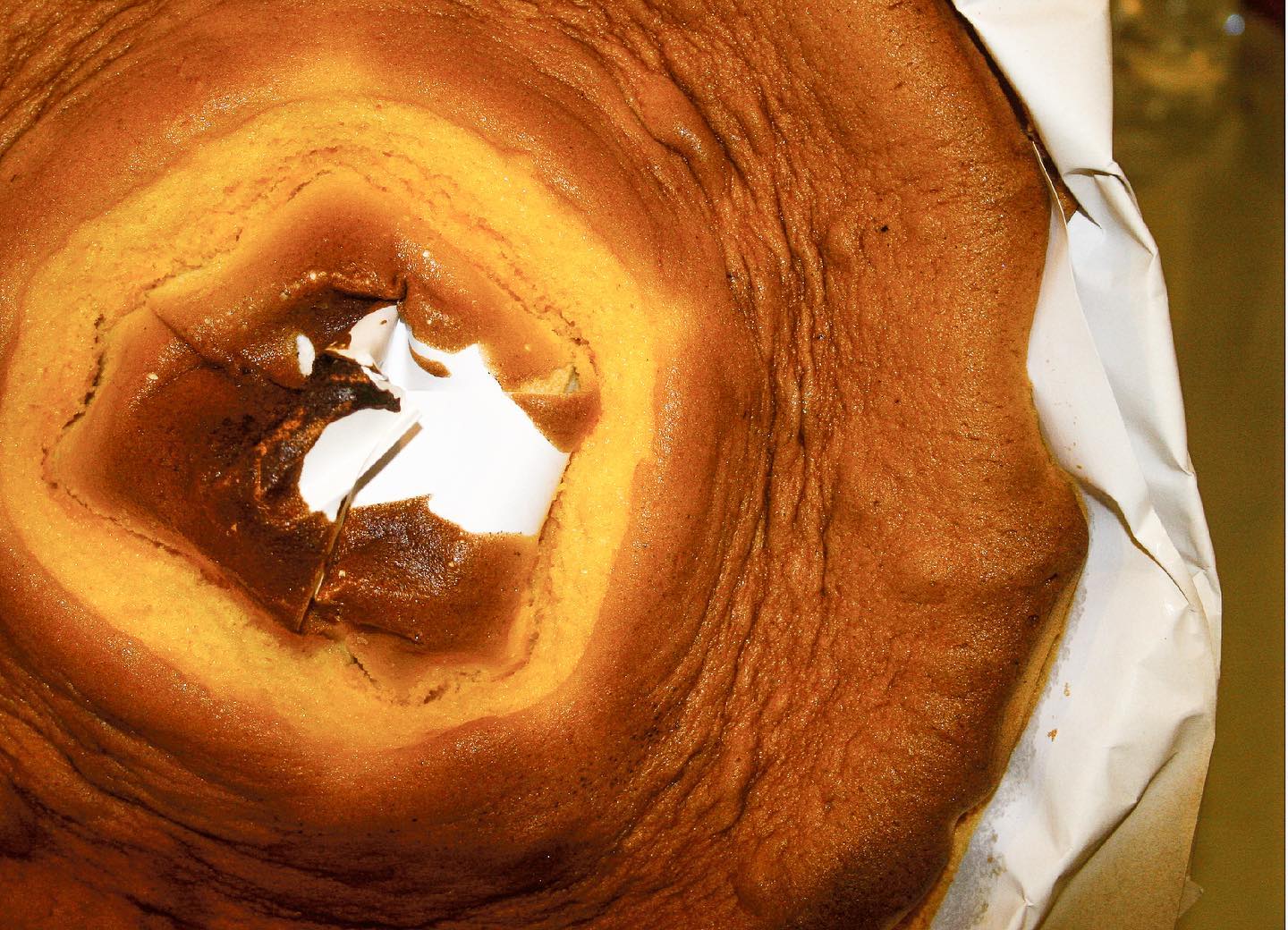 Passar a mistura do pão de ló para a forma e levar ao forno durante ± 30 minutos a 220ºC (o tempo de cozedura varia consoante o tamanho da peça)